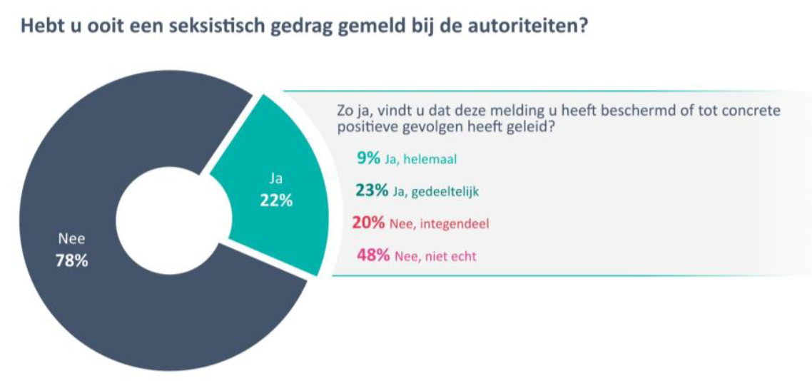 De enquête bevestigt dat seksistisch gedrag blijvende gevolgen heeft voor de mentale gezondheid, het welzijn en de loopbaan van vrouwen: burn-out, terugtrekking, marginalisering in projecten en beperkte professionele kansen.