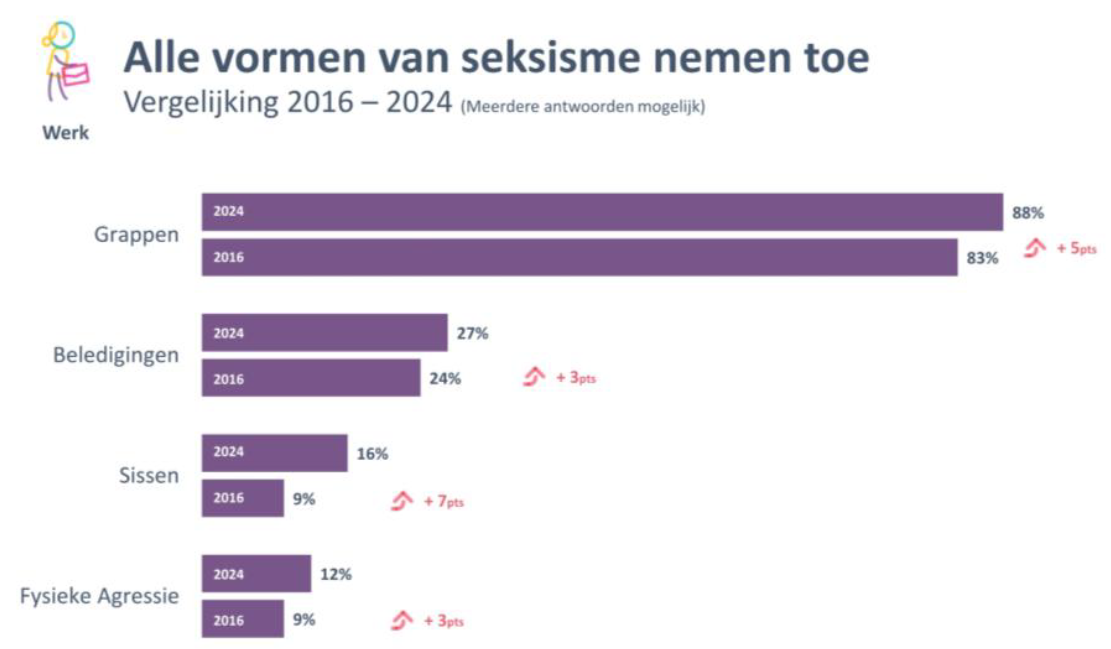 Nieuw onderzoek van JUMP: 4.000 vrouwen schetsen een verontrustend beeld van seksisme op het werk en tijdens hun studies. Bijna 1.000 mannen bevestigen dat zij er getuige van waren.