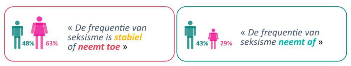 De perceptie van de ernst van seksistisch gedrag evolueert: 66% van de mannen vindt het “zeer ernstig” (tegenover 53% in 2016). Jonge vrouwen zijn het meest gevoelig: 81% van de vrouwen jonger dan 35 beschouwt seksisme als zeer ernstig.